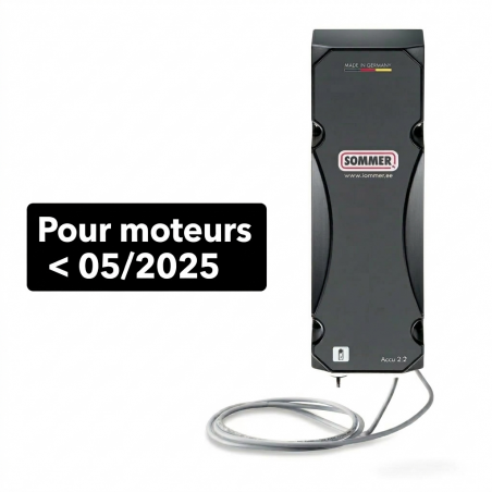 Batterie de secours 24 V (S12628-00001) est un accessoire SOMMER compatible seulement avec les produits SOMMER avant mai 2025présentant les caractéristiques suivantes :