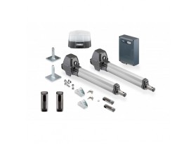 • Deux automatismes pour portail à battants twist 200 M – course 390 mm, pour vantaux jusqu’à 300 Kg et 2,5 m par battant (utilisation universelle pour butée à gauche ou à droite) Commande DST-A 24 en boîtier (IP65), dimensions : 250×175×75 mm Ferrures sur poteau et battant de porte Récepteur radio enfichable en 868,95 MHz (Somloq2) 2 Émetteurs portatifs 4 canaux « Pearl » réf. 4018V000 1 jeu de cellules à 180° 4 fils réf. 7029V000 1 feu d’avertissement blanc à LED réf. S13645-00001