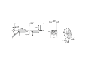 • Rail de roulement ( 2750 MM) en trois parties, chariot, boîtier de commande, suspension plafonnière, fixation contre la chute, bras de poussée, équerre de ferrure de porte et matériel de fixation