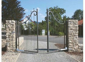 • Deux automatismes pour portail à battants twist 200 M – course 390 mm, pour vantaux jusqu’à 300 Kg et 2,5 m par battant (utilisation universelle pour butée à gauche ou à droite) Commande DST-A 24 en boîtier (IP65), dimensions : 250×175×75 mm Ferrures sur poteau et battant de porte Récepteur radio enfichable en 868,95 MHz (Somloq2) 2 Émetteurs portatifs 4 canaux « Pearl » réf. 4018V000 1 jeu de cellules à 180° 4 fils réf. 7029V000 1 feu d’avertissement blanc à LED réf. S13645-00001